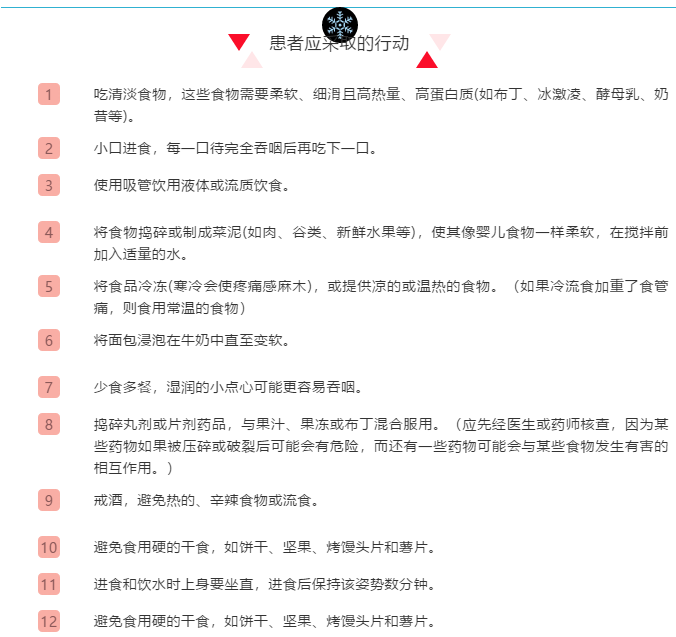 吞咽困難是指患者無法將食物或水通過咽喉下送。當努力吞咽時,患者可能會出現(xiàn)嘔吐、咳嗽、流涎或明顯疼痛感。導(dǎo)致吞咽困難的病因有多種,除針對咽喉或胸部放療和化療所產(chǎn)生的短期不良反應(yīng)外,口腔感染(如鵝口瘡)或食道感染也是常見病因。